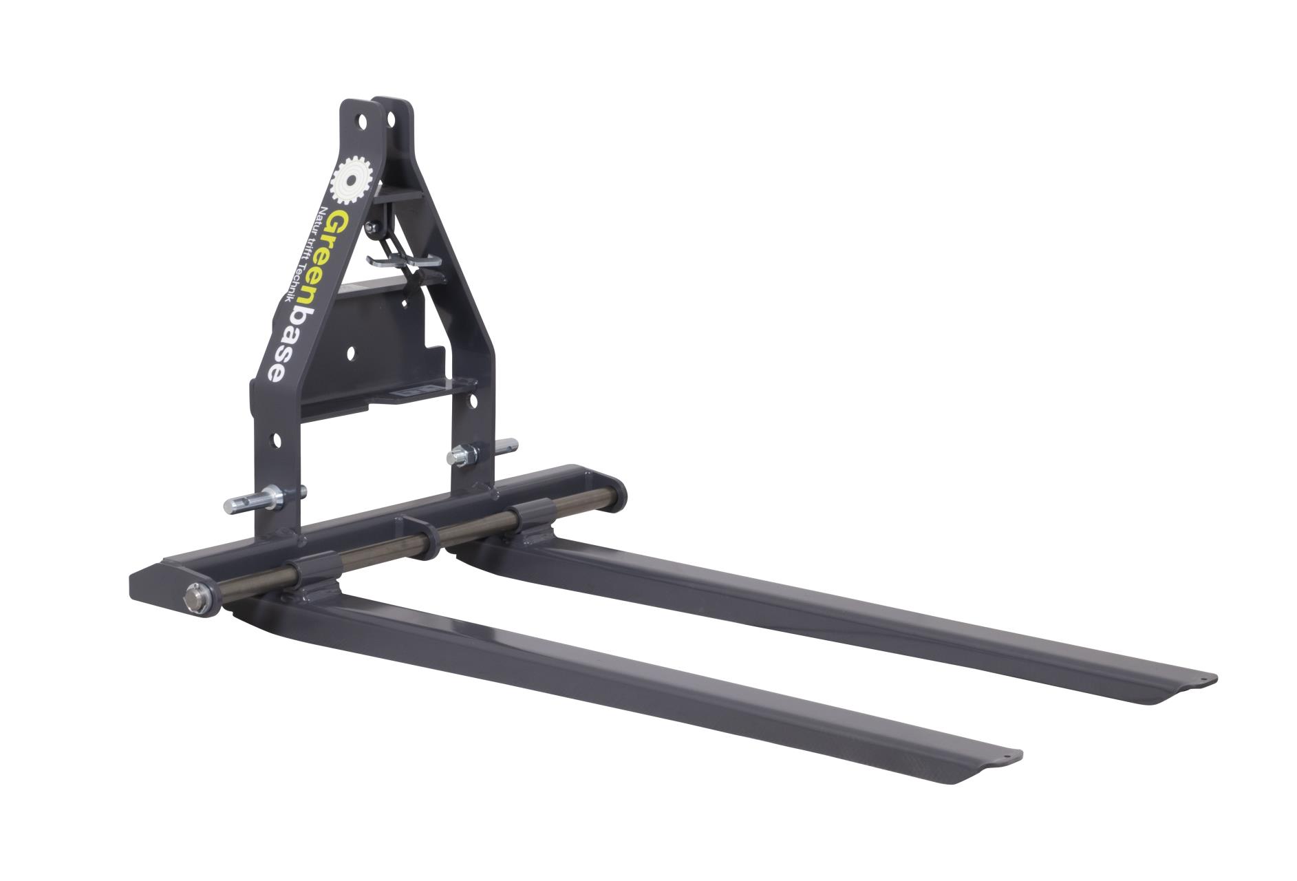 Hubgabel für Traktoren. Mit einer Tragfähigkeit bis zu 500 kg ist diese umklappbare Hubgabel 500 die Unterstützung, die Sie an ihrem Traktor an den Dreipunktanschluß mit Kat am Heck montieren können. Mit einer in der Breite einstellbaren Gabel von 53 cm bis 83 cm (Gabelaußenmaß) und einer Zinkenlänge von 110 cm ist diese Hubgabel nicht nur für Standard-Paletten geeignet. Nutzen auch Sie die Möglichkeit, mithilfe Ihres landwirtschaftlichen Traktors und dieser Palettengabel. den Brennholztransport zu vereinfachen. Schnell und einfach zum Ziel bzw. zum Brennholzlager.